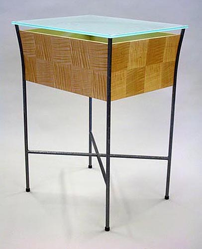 Fiddle Back Maple, Steel, Frosted Glass, (lxwxh) 24x20x32